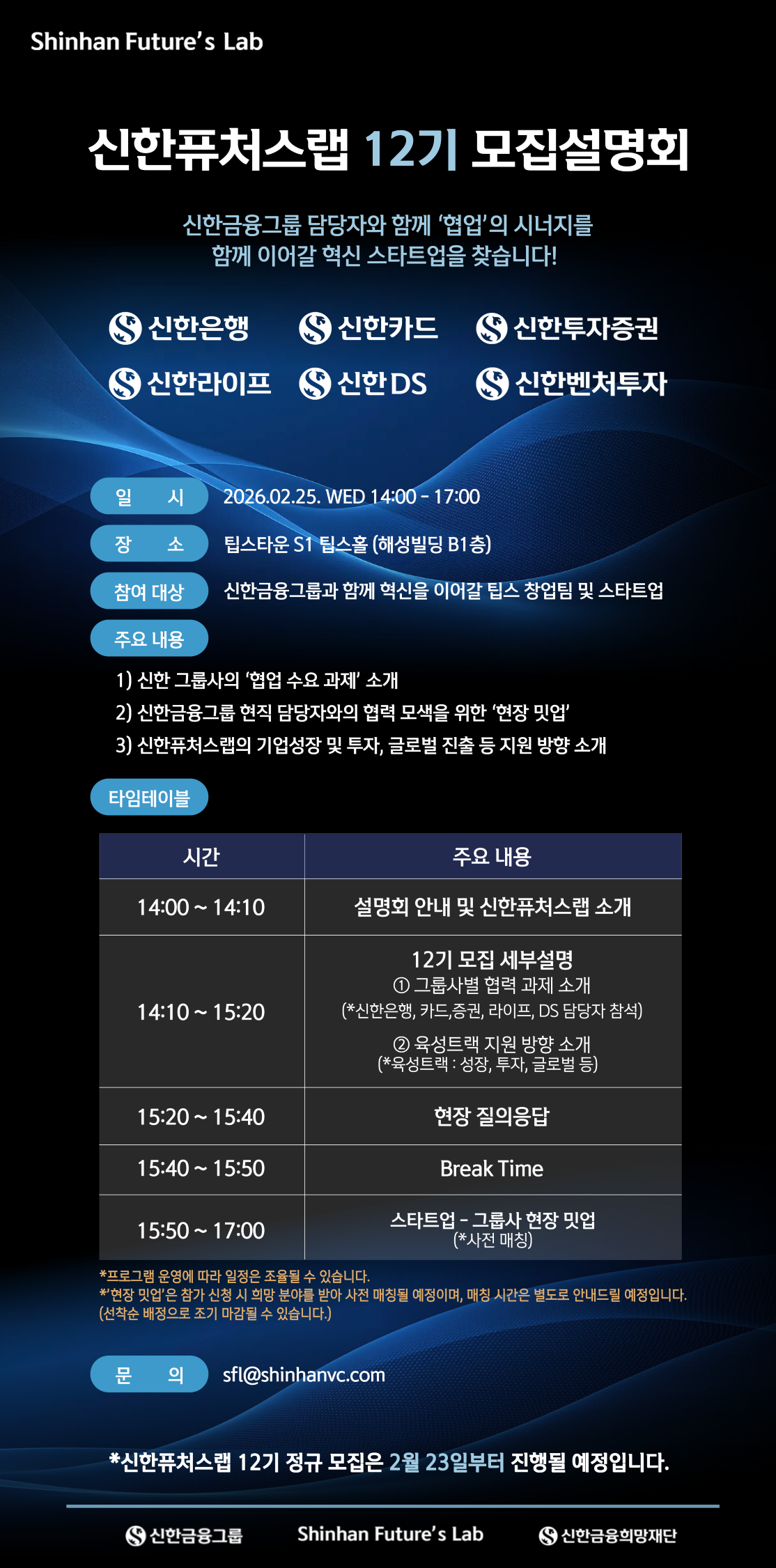 [신한퓨처스랩 12기 모집 - 오프라인 설명회 참여 안내(2/25)]