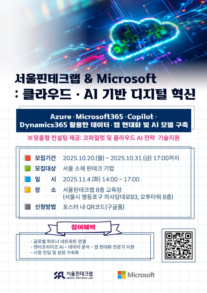 [모집] ‘서울핀테크랩 & Microsoft’ 오픈이노베이션 모집(~10.31)
