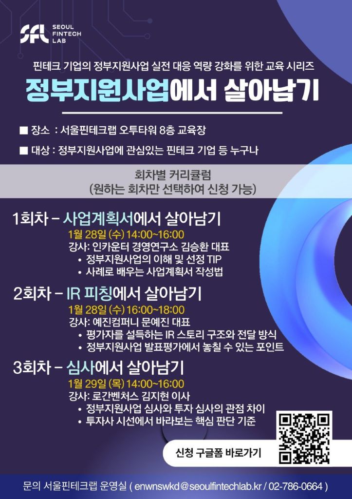 [서울핀테크랩] 2026 FIN-아카데미 '정부지원사업에서 살아남기' 교육 참가자 모집 (선착순)