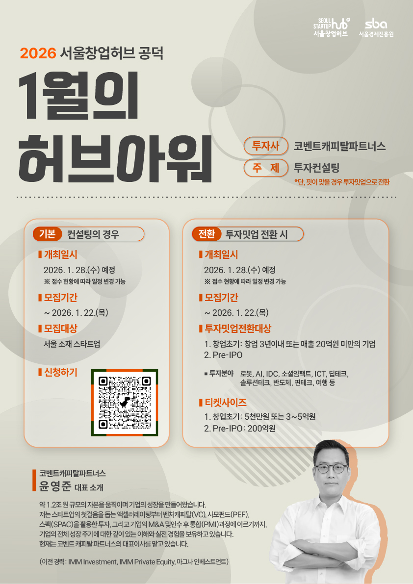 [외부모집]1월의 허브아워 (투자컨설팅/투자밋업 - 코벤트캐피탈파트너스)
